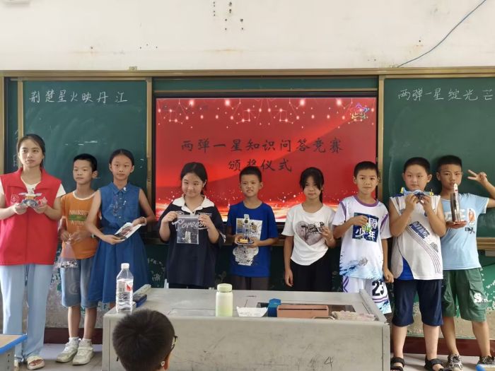 实践队精心设计课程体系,通过“两弹一星概论”理论课,向学生们讲述我国核工业与航天事业的发展历程;在“功勋人物故事会”中,钱学森、邓稼先等科学家的感人事迹深深打动了孩子们。为强化学习效果,队员们还带领学生动手制作水火箭、纸战斗机与军舰模型,并组织“两弹一星拼图”比赛,让抽象的科学知识在趣味实践中变得生动可感。