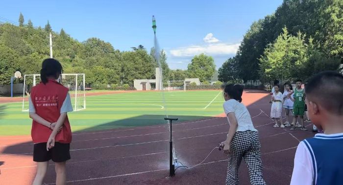 特色课程让红色教育更具活力。拼图课上,同学们合力拼接功勋人物群像,每完成一块都兴奋击掌;卫星模型制作时,大家互助协作,完成后的欢呼雀跃里满是成就感;水火箭发射瞬间,仰头追踪的身影藏着对科学的向往;剧本杀中,扮演科研工作者的小朋友认真宣告“要为国家做贡献”。