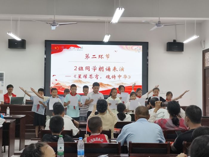 图为同学们朗诵《星耀苍穹,魂铸中华》。