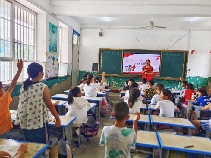 本网讯(通讯员 何瑞雪)七月的丁家营镇小学,笑语与歌声交织,知识与梦想共燃。7月1日至12日,湖北医药学院“星火”暑期社会实践队的13位志愿者在此开展了为期12天的红色宣讲活动。本次活动以“荆楚星火映丹江,两弹一星绽光芒”为主题,吸引70位当地小朋友参与。