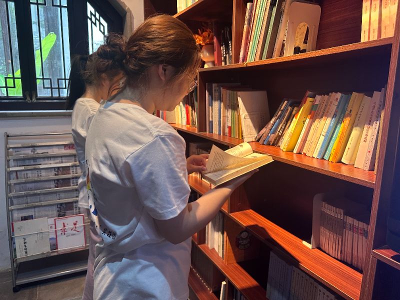 图为团队成员于馆内私塾室共读诗词作品、学习姑苏文化。成一涵供图