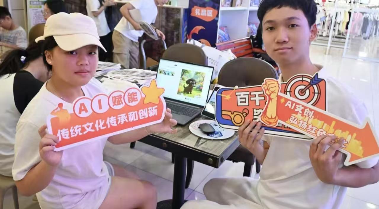 7月12日,实践团在岁宝百货二楼活动中心举办“共促智创·铸亮红基因”主题摆摊活动。现场巧妙将AI技术实践与家乡情怀抒发相融合,团队成员运用各种AI工具,邀请居民参与体验,共同创作具有北中特色的红色数字文创产品。活动通过科技实践、文化创作,让红色基因在科技互动中焕发光彩,以青春之姿书写智创赋能、文化传承的实践篇章,让红色火种在夏日商场持续传递、熠熠生辉。