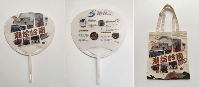图2:实践团成员设计有当地特色建筑的手持扇、帆布袋