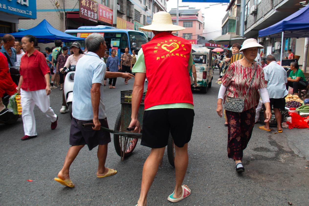 在乡间小路上,队员们遇见一位佝偻着背的老奶奶,正吃力地扛着一大袋沉甸甸的货物。团队成员们立即上前,主动接过老人肩上的重物,一路护送她安全返家。行至村口集市时,又看到一位老爷爷正推着满载辣椒的板车缓慢前行,虽然道路平坦,但车上堆积如山的辣椒让老人推得十分费力。团队成员二话不说快步上前,稳稳扶住车把,与老爷爷并肩推车,最终将货物顺利送达集市摊位。