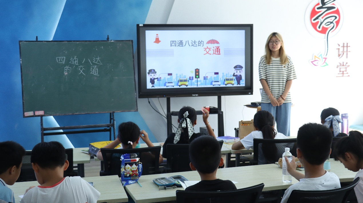 7月18日下午,微山县荷韵小学的教室里,一场关于现代生活“血脉”的探索正热烈展开。“圆梦”实践团成员以《四通八达的交通》为主题,为孩子们带来了一堂融合历史纵深、现实挑战与绿色未来的品德课,在方寸之间铺展开人类移动文明的壮阔图景。