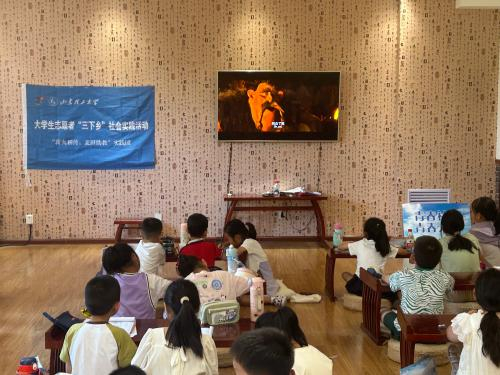 放映前,实践团成员化身“故事向导”,为孩子们简要介绍了电影背景和角色设定,帮助他们更好地理解故事内容,让孩子们对即将展开的故事充满期待。