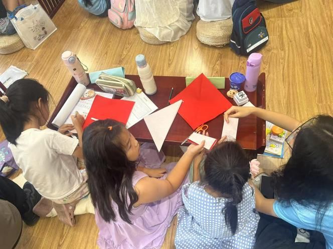 动手环节,王老师为孩子们分发彩纸与安全剪刀,指导大家剪五角星加爱心图案以提前祝贺建军节。孩子们专注创作,剪刀灵动穿梭,彩纸化作精致作品,在感受传统文化的同时,既锻炼了动手能力,也传递了对建军节的祝福。