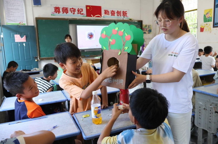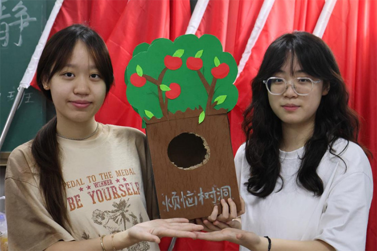 图三同学们正在往树洞里投入烦恼纸条 陈喆 供图