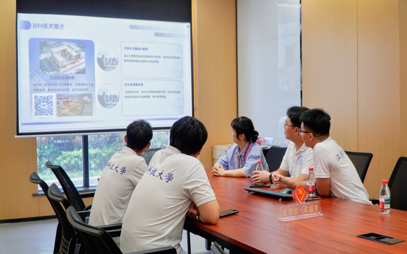 在调研尾声,队员们与新乐村工作人员开展座谈交流,土木工程专业的周圣杰同学结合科研课题做了题为《BIM与人工智能的融合能够打破传统社区建设与管理中的信息壁垒和技术瓶颈》的报告,为智慧社区建设探索新路径。
