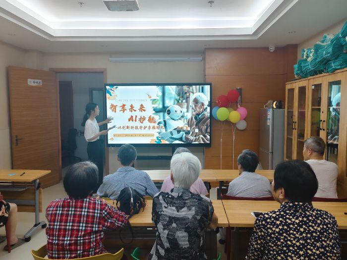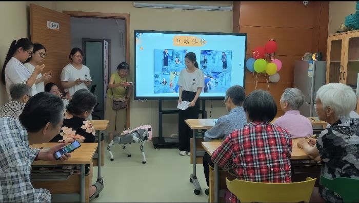 2025年7月5日,来自苏州城市学院数字经济与管理学院的“智享未来·AI伴老”暑期实践团队带着机器狗“笨笨”,走进苏州市爱心护理院,开展智能助老科技的科普活动。