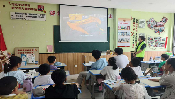 教学高潮来临在学生们分组协作组装液压挖土机模型时——这正是“做中学”理念的生动体现!志愿者们穿行于小组之间,适时点拨,引导观察与思考。当学生们在协作中亲手解决齿轮啮合、液压管连接等问题,成功让模型“动起来”时,抽象的原理瞬间变得触手可及。这堂鲜活的实践课,不仅深化了对知识的理解,更让“科技改变生活”的种子在亲手创造中生根发芽,眼中闪烁的兴奋与自豪成为最佳的学习反馈。