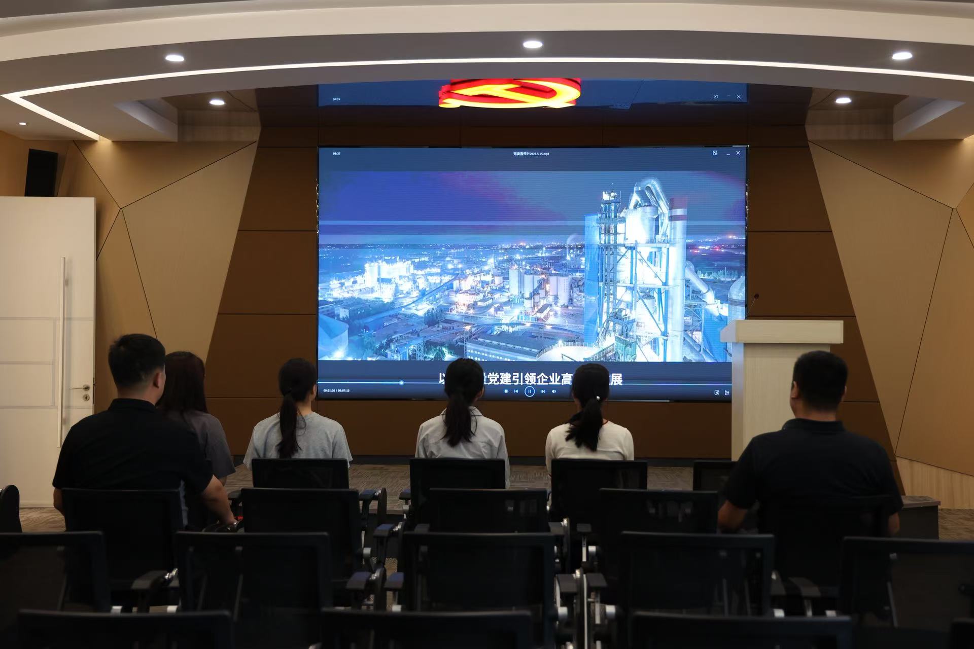 团队与负责人一同观看企业宣传片并召开座谈会