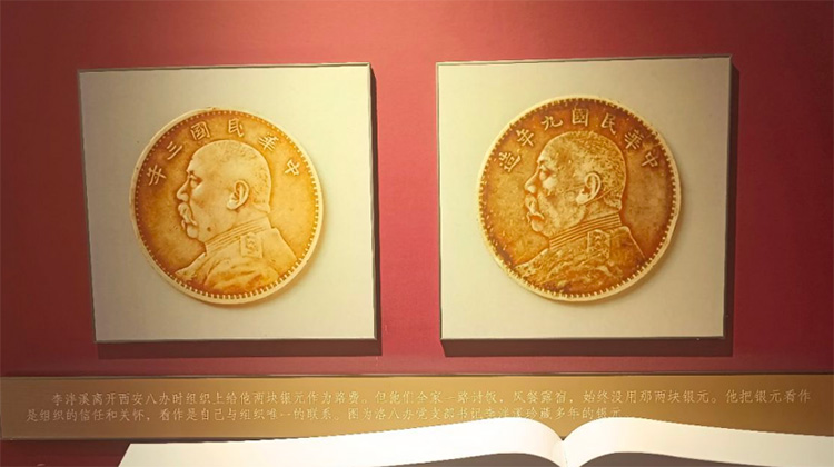 而在相邻的展厅里,两块磨损的银元让队员们深受触动。1942年撤离途中,党支部书记李泮溪负伤被俘,越狱后带着妻儿徒步前往延安。一路上,他们忍饥挨饿、风餐露宿,却始终舍不得花掉组织发放的两块银元。李泮溪说:“这是党的信任,更是战友的命!”这两枚银元的故事超越了简单的财务保管行为,而是一种对党、对革命事业绝对忠诚与高度负责。正是这些精神支撑着革命者前赴后继、矢志不渝地为民族独立和人民解放而奋斗。它是革命传统教育中一份宝贵的精神财富。