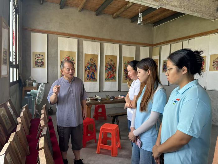 为深入贯彻《重庆市非物质文化遗产条例》中关于“对非物质文化遗产进行记录、传承与传播”的要求,积极响应地方对梁平木版年画等非遗项目的保护与推广政策,重庆外语外事学院音乐学院“星芒缀夏·月辉映童”志愿团于2025年7月15日上午,专程前往重庆市梁平区屏锦镇云屏路111号的德合泰,拜访并学习梁平木版年画的制作技艺与文化内涵,以实际行动助力非遗传承。