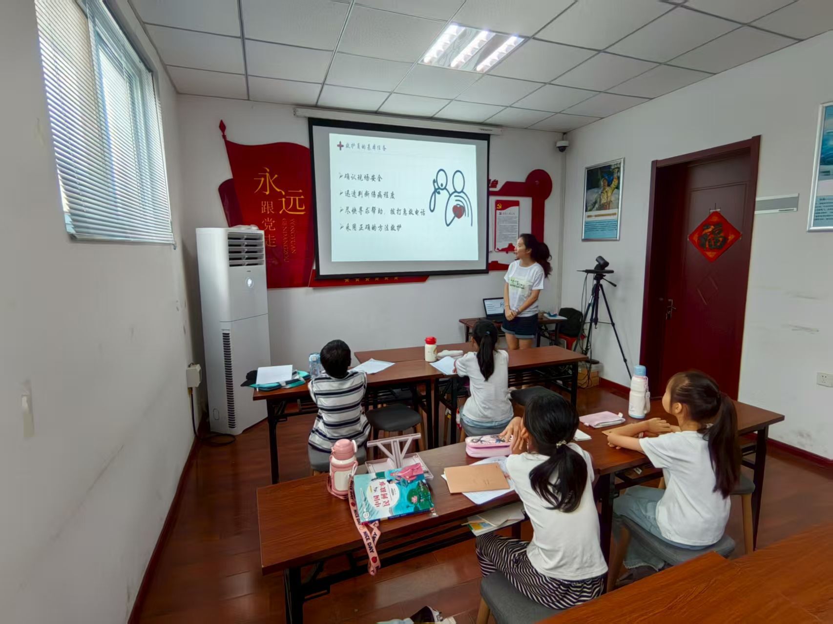 7月23日,山东大学笃学尚行社会实践队的栾佳慧同学在济南市历城区新园社区活动室内开展了一场专为社区少年儿童量身打造的创伤救护知识普及讲座,将“创伤发生时如何自救互救”这门至关重要的生命技能,生动地传授给了在场的小小听众。