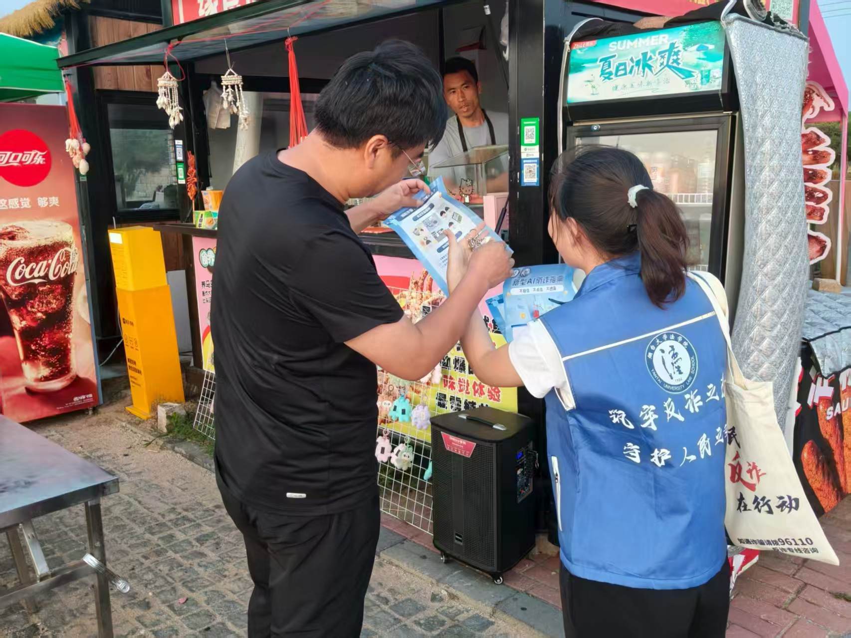 (图为实践队队员在养马岛美食广场开展反诈问答互动“法盾防诈”实践队 田欣娣 供图)