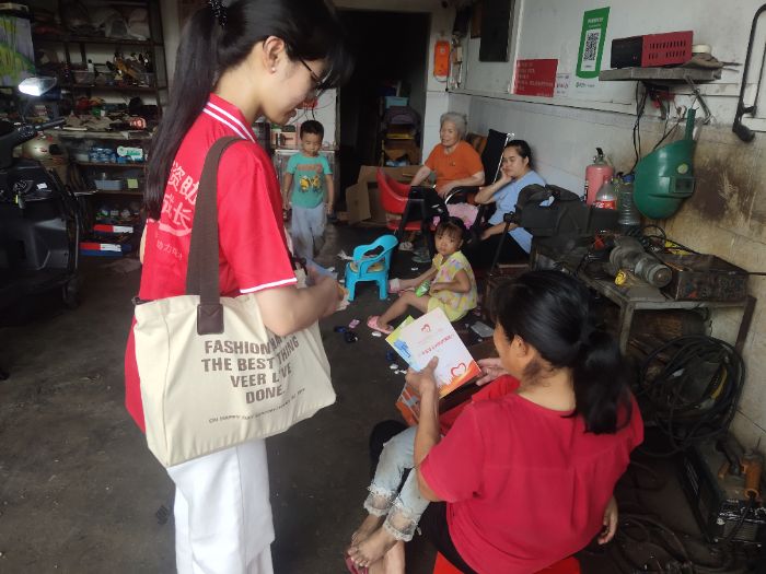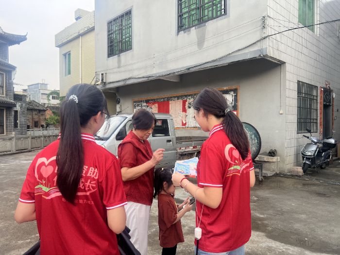 为进一步扩大政策覆盖范围,思源逐梦队深入乡村的每一个角落。队员们分批走进集市、商贩摊位和居民家中,派发《广东省学生资助政策简介》和《生源地信用助学贷款申请指南》等宣传手册,与群众面对面交流,深入了解他们的家庭状况和孩子的教育情况。针对经济困难家庭,队员们耐心讲解国家资助政策,鼓励他们积极申请助学补贴,为孩子的教育之路扫清障碍。沿街宣传的过程中,队员们不仅传播了政策知识,更收获了群众的信任与支持。他们的脚步虽疲惫,但心中却充满了为乡村学子点亮希望的坚定信念。