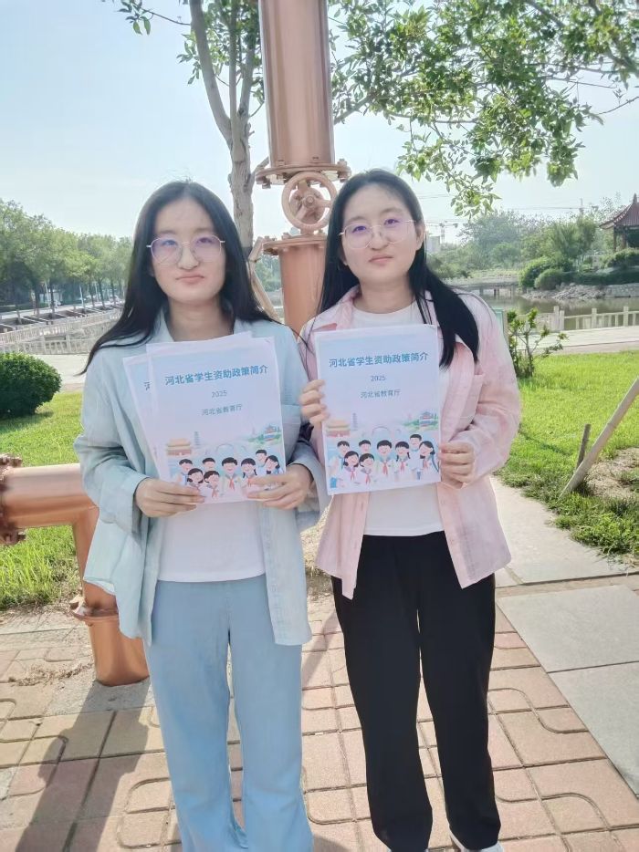 图为实践团成员展示《河北省学生资助政策简介》宣传资料 杨柳然供图
