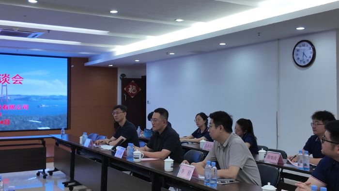 在广西欣港交投公司,实践队与公司董事长、总经理贾利强,副总经理、总工程师李玉彬等领导及部分校友进行了深入交流。贾利强对长安大学师生的到访表示热烈欢迎,详细介绍了公司的发展历程、业务布局及龙门大桥等重点项目的建设情况。他深情回顾了在母校求学期间的成长经历,感谢长安大学在专业人才培养方面给予的支持,并希望进一步加强校企合作,共同推动行业技术进步。