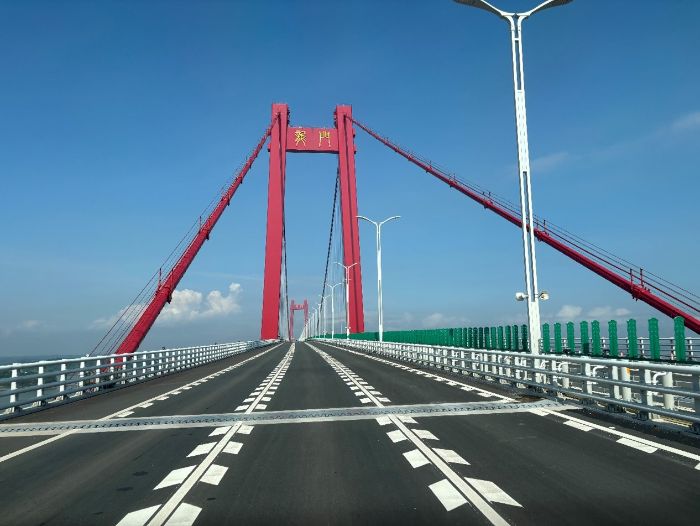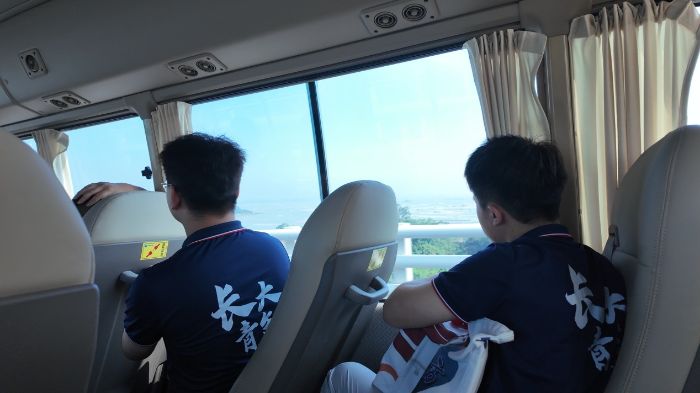 随后,实践队乘坐班车前往龙门大桥参观学习。作为广西重点交通工程,龙门大桥跨越钦州湾,是连接北部湾经济区的重要通道。在项目负责人的讲解下,队员们深入了解大桥的设计理念、施工难点及技术创新,深刻感受到交通建设者的智慧与担当。