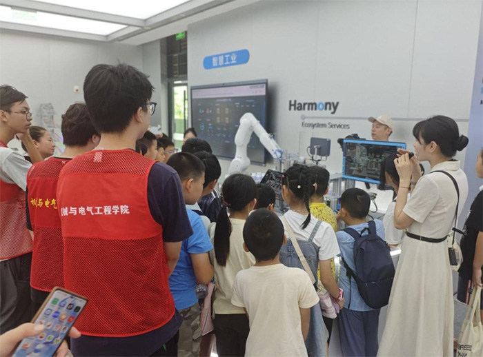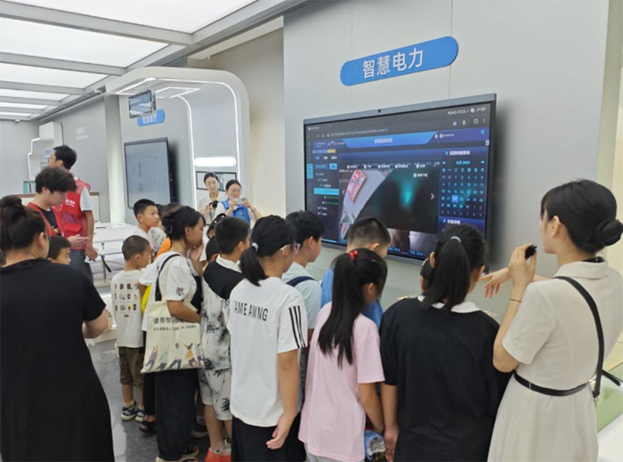 在鸿蒙智慧电力展区,志愿者结合专业所学,引导学生观察电力系统的智能化管控。通过鸿蒙操作系统实时监控电网负荷、动态优化能源调度的案例,学生直观理解“数字孪生技术”如何提升电力系统稳定性。一名小男生打趣到:“人生惬意三件套:空调、手机和西瓜。第一位就是空调,没有智慧电力,空调怎么运转啊,武汉这么热!”