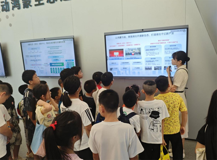此次活动由龙泉社区主动发起,萤火星空志愿服务团全程协助组织与引导。在鸿蒙创新中心专业讲解员的带领下,孩子们依次参观了鸿蒙操作系统展示厅、智能终端体验区及创新应用场景展区。
