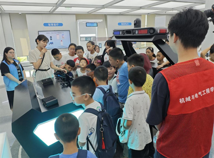 依托机械与电气工程学院专业背景,萤火星空志愿者们聚焦“智慧电力”“智能驾驶”“智慧工业”三大前沿领域,带领学生沉浸式体验国产科技力量,在行走的课堂中点燃强国梦想。