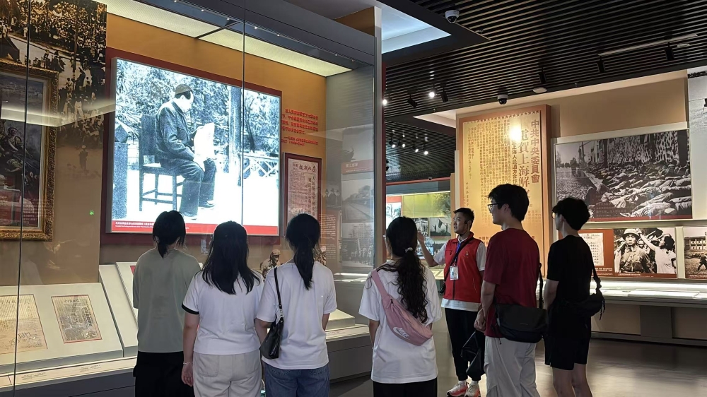 (图为实践团成员在参观过程中听讲解。“烽火记忆·国安新声”实践团通讯员 赵怡玲 供图)