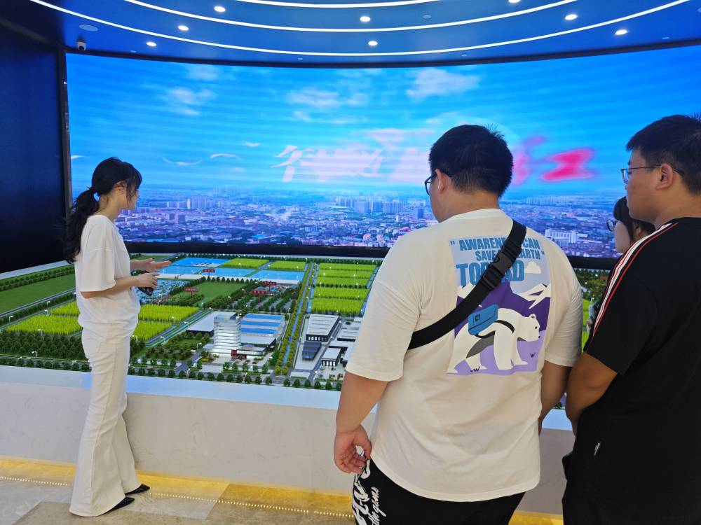 工作人员为团队成员讲解产业园布局 梁伶子摄