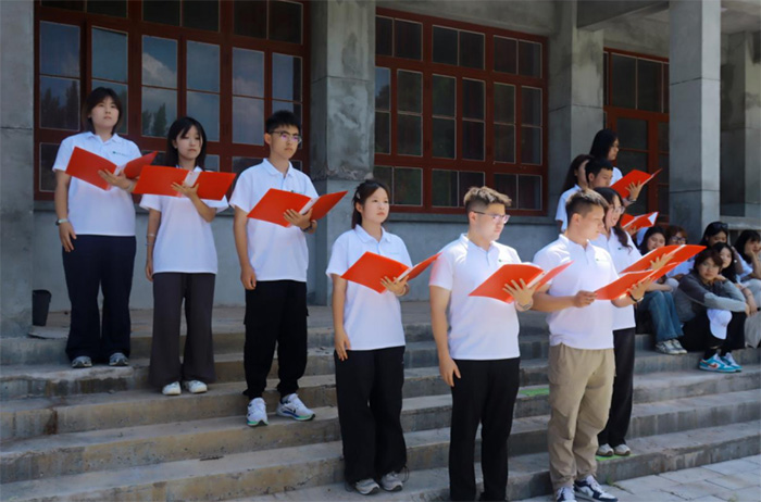 实践团在南泥湾合唱《我和我的祖国》。董金涛 供图