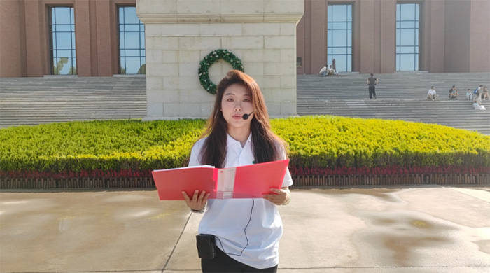 实践团成员杨盈在照金革命纪念馆进行“红星照耀”主题宣讲。董金涛 供图
