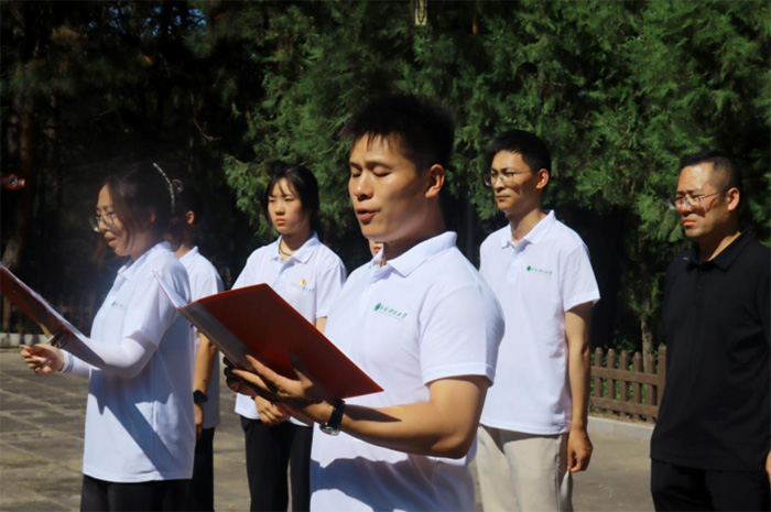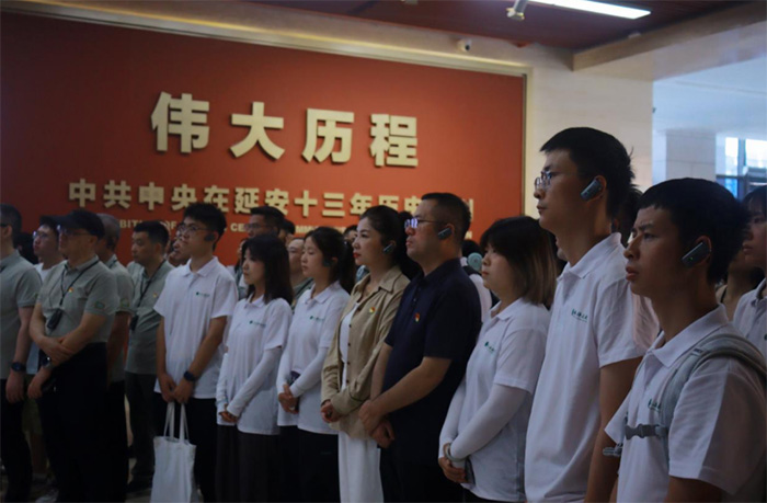 随后,实践团走进王家坪革命旧址。静卧延河之畔的土墙小院,曾是中共中央军委和八路军总部驻地。成员们沿军委作战室的斑驳长桌缓步前行,遥想毛主席灯下草拟电文的场景;驻足旧居窗前,半盏油灯仍似星火闪烁。青春与历史在此对视,先辈以窑洞为营、山河为卷的奋斗历程,让成员们更加坚定了“把延安风骨写进能源报国实践”的信念。