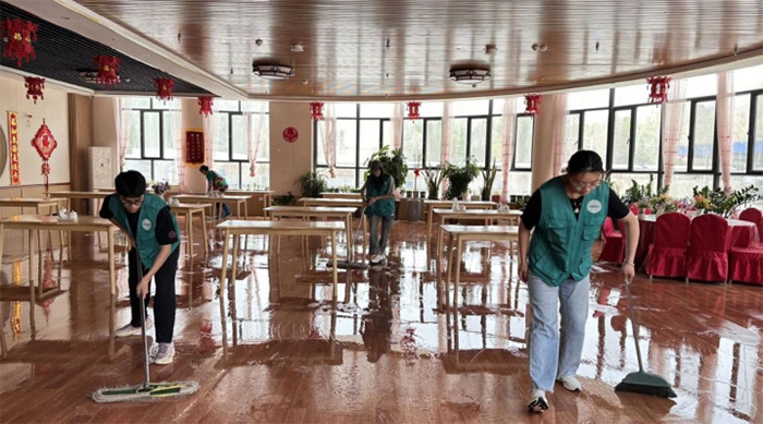 劳动中,团队成员分工明确,室内成员重点对养老院走廊、活动室、休息区等区域进行清扫确保老人活动区域干净无尘。而室外成员则为花卉修枝剪叶、拔除杂草、松动土壤,并集中浇水,让原本略显杂乱的绿化带重现生机。虽然天气炎热但队员们却未减热情,在数小时的努力下,不仅改善了院内环境,更让老人们感受到了我们的温暖与担当。