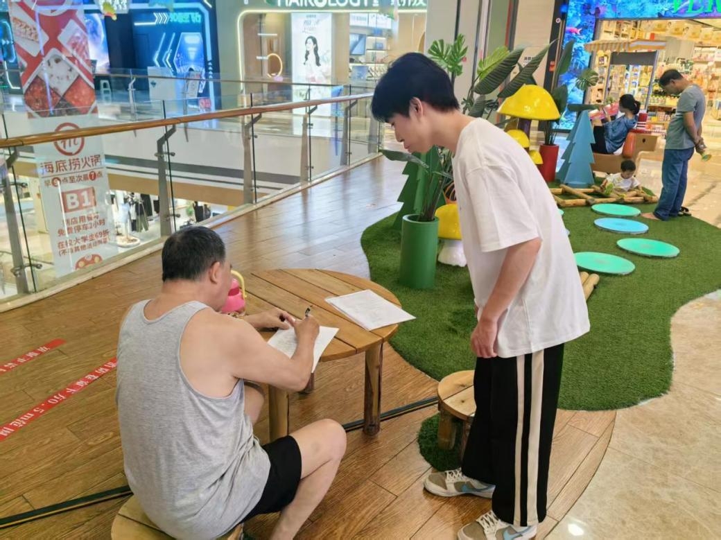 7月5日下午,小队前往富力广场,这里是休闲消费的热门场所,小队成员们针对在此消费的人群开展访谈。队员们先确认受访者的年龄、居住城市、教育程度等基本信息,为后续的数据分析奠定基础。随后,成员们围绕多个与消费合同格式条款相关的关键问题展开提问,了解受访者是否阅读格式合同,明确自己的权利义务,是否维权以及以什么形式维权等内容。受访者们分享了自己的经历,如办会员时遭遇的自动续费未提醒等情况,为小队提供了丰富信息。