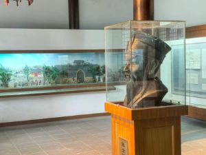 沿东路而行,实践团成员步入张士诚史迹陈列馆。馆内展品系统梳理了这位元末枭雄的生平轨迹:因不堪元朝末年的苛政压迫,张士诚率领十八位盐民以 “扁担起义”揭竿而起,建立大周政权,并凭借江浙富庶之地休养生息。陈列馆中“出足以振千里之威风,入则以布万民之德泽”的记载,生动诠释了张士诚以民为本的治理实践。参观展馆后,实践团成员朱洁同学忍不住感慨:“张士诚的治理智慧中,蕴含着传统社会‘为政以德’的核心思想,这恰恰说明,优秀的地方治理传统自古就与民众需求紧密相连,而玉皇宫将这段历史展示出来,正是对本土治理文化的鲜活传承!”