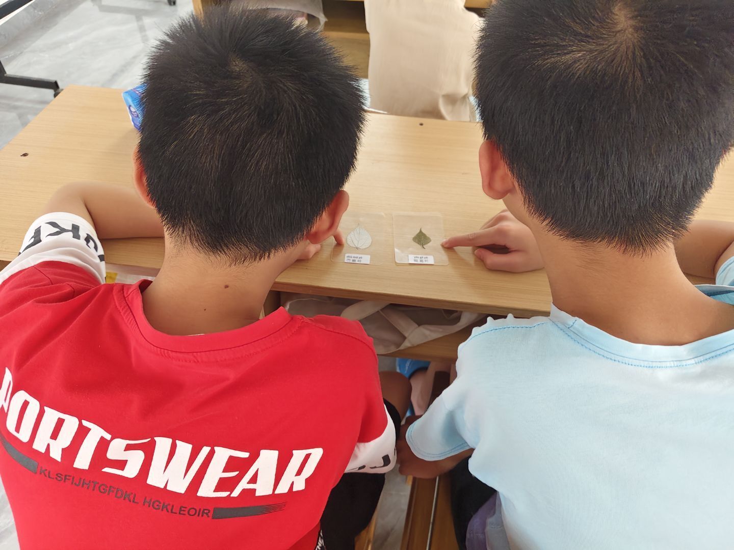 (孩子们认真观察叶片标本 乔金格摄)