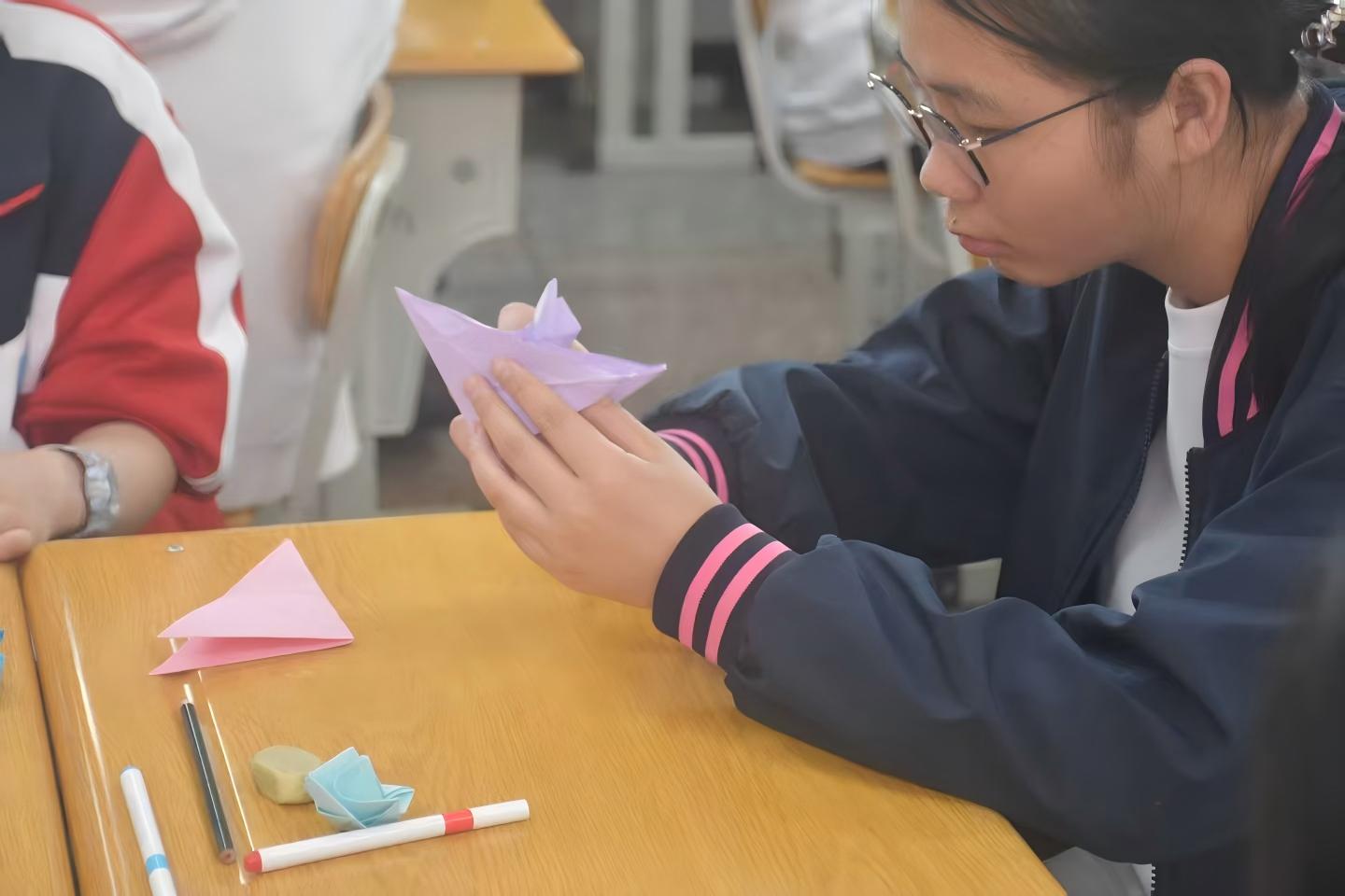 开营仪式上,宣威六中团委书记缪铖热情欢迎支教队的到来,队长胡坤介绍“榕生”寓意——如榕树般茁壮共生,并概述了夏令营筹备细节。仪式结束后,“折纸传情”活动率先展开,志愿者带领同学们折千纸鹤、玫瑰花,指尖翻飞间,陌生感悄然消散。有同学在纸鹤翅膀写下“希望交到能一起打球的朋友”,成为友谊萌芽的起点。