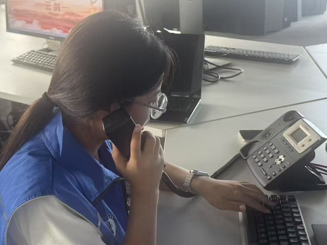 (图为实践队成员在预警劝阻岗位接听电话 “法盾防诈”实践队 胡雅淇 供图)