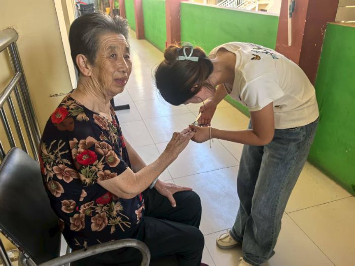 服务过程中,成员们还为老人提供贴心帮助。为老人修剪指甲时,他们细致又温柔,从这一小小的举动里,传递着深深的敬重与关爱。一位参与活动的同学表示:“和老人交流倾听他们过去的回忆,让我更加懂得珍惜当下,关爱长辈。”