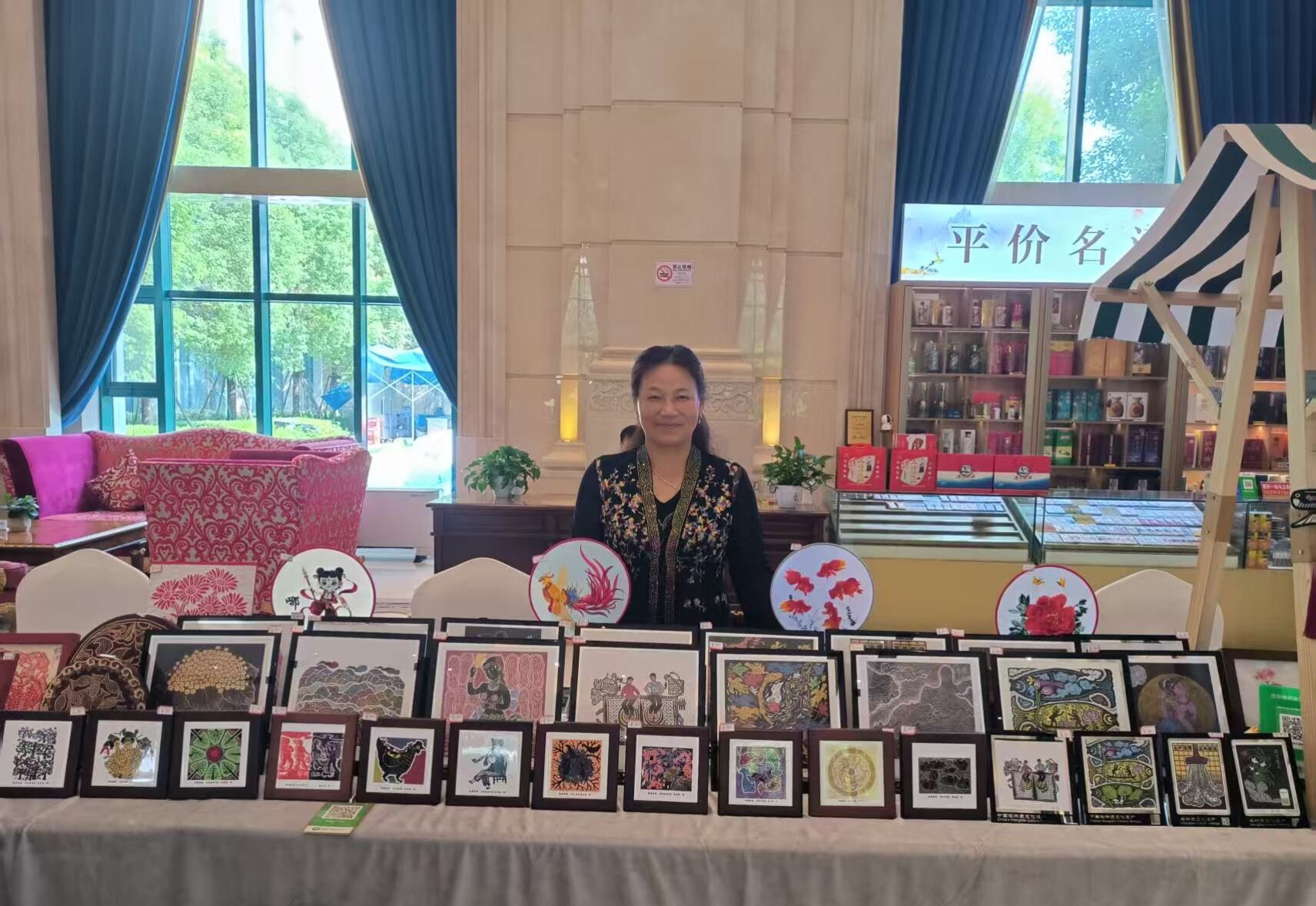 该图为韩玉红老师与其部分夷陵版画代表作品在展厅的展览合照(石霄供图)