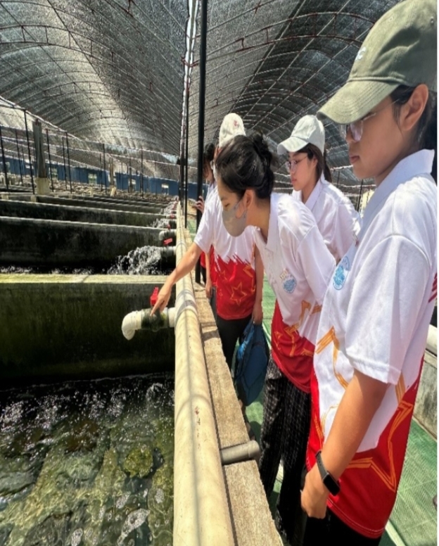 2025年7月4日,实践队成员来到了福建省泉州市晋江市金井镇南江村。依海而兴,向海图强。晋江市雄踞闽南金三角黄金海岸,坐拥绵长海岸线与丰饶海域,渔业根基深厚,从业者众。这里是福建省重要的水产苗种繁育与养殖基地,水产加工贸易活跃,产业链条日趋完善。依托发达的港口物流和完善的市场网络,晋江成为闽南地区重要的水产品集散与贸易枢纽,产品远销海内外。 4号上午实践队员走访了晋江福大鲍鱼水产有限公司。公司总经理王权介绍了福大鲍鱼与高校之间的产学研合作模式、养殖流程、供应链管理及研发机制等方面的现状与发展。