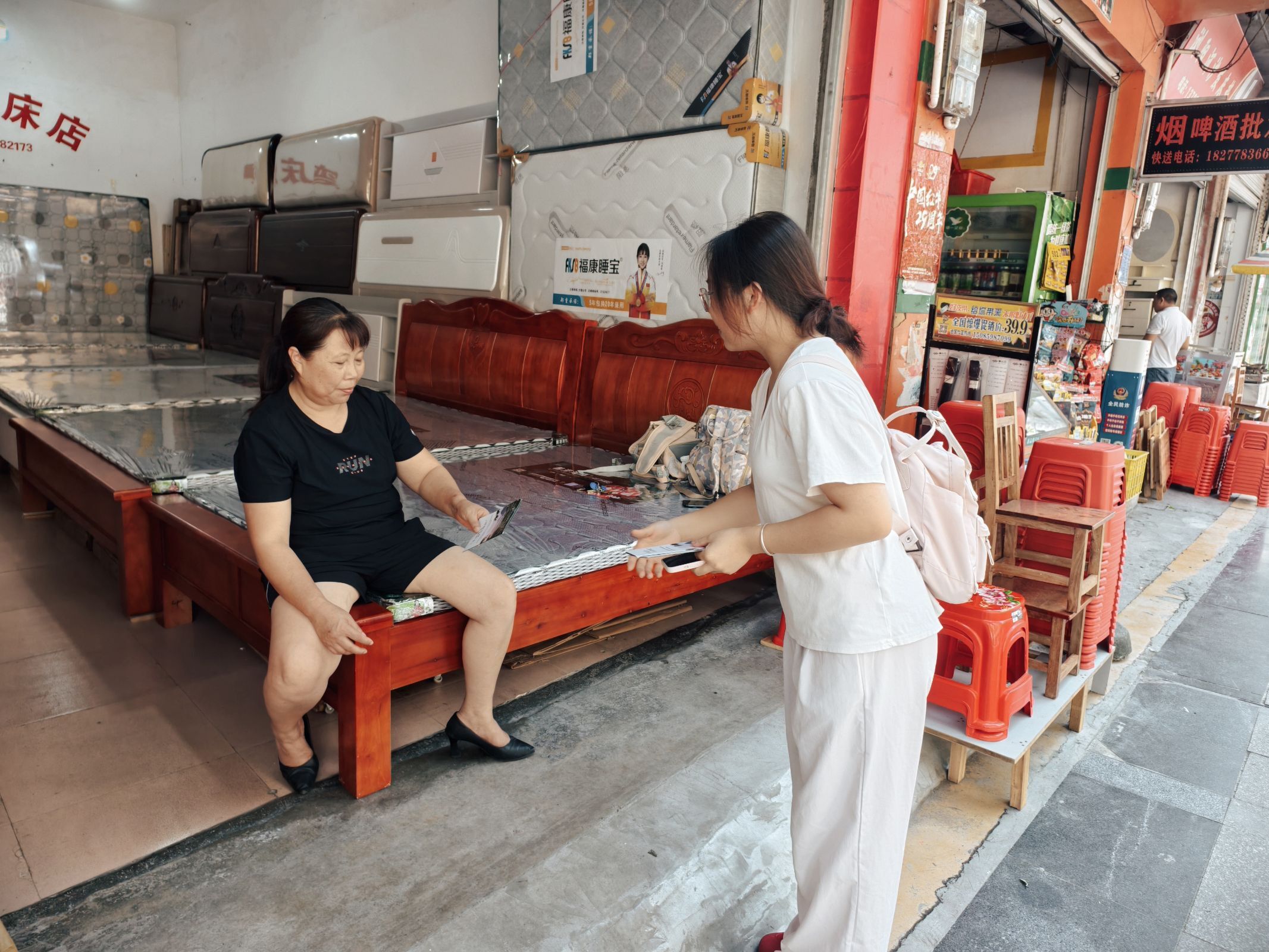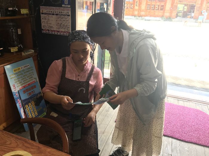图为广西师范大学林药双兴调研队分发并讲解宣传手册