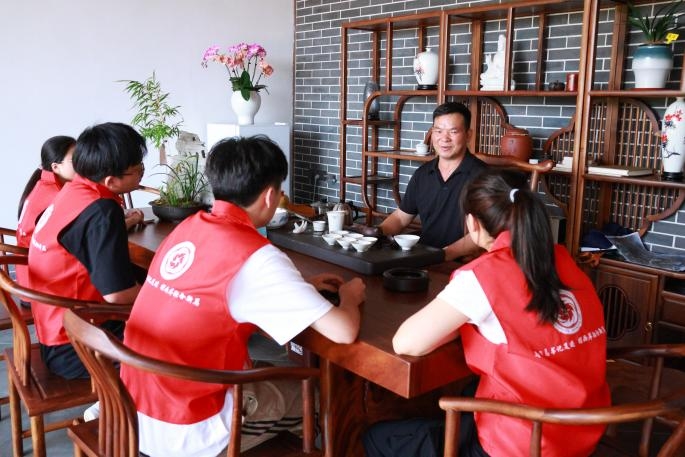 鸿鼎农场内,实践队与2023年“福建省劳动模范”、漳平台商联谊会会长李志鸿先生进行了座谈。访谈中,李志鸿回顾了自己扎根大陆二十余年,专注高山乌龙茶种植与加工的创业历程。如今,鸿鼎农场已成长为两岸规模领先的现代化高山乌龙茶生产基地,其匠心打造的茶叶广受市场青睐。队员们深切感受到台商在大陆创业的热忱与坚守,更直观地领略到两岸农业产业深度融合带来的蓬勃机遇与丰硕成果。