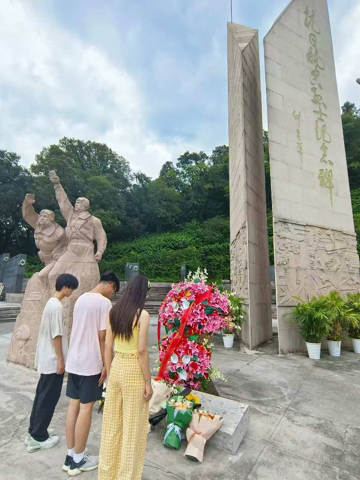 活动的最后,走过层层阶梯,实践团全体成员来到抗日航空烈士纪念碑前。纪念碑高耸挺立,庄严肃穆,两侧黑色石碑上镌刻着无数航空烈士的姓名,无声地诉说着他们为国家和民族所做出的巨大牺牲。全体成员列队整齐,怀着无比崇敬的心情低头默哀,以此表达对革命先烈的深切缅怀与崇高敬意。默哀的片刻,现场静谧无声,每个人的心中都涌动着对先烈的敬仰之情,也更加坚定了传承抗战精神、为民族复兴贡献力量的决心。