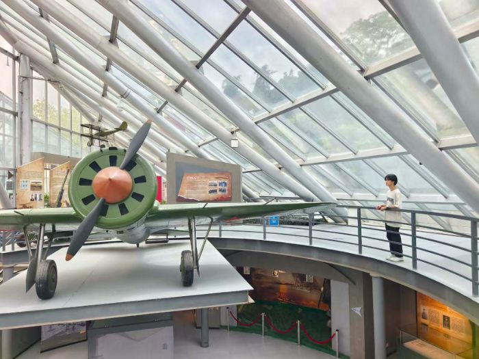 在展馆的另一区域,实践团成员还观看了抗日航空模型飞机,进一步了解了当时战机的性能与特点,更深刻地感受到先烈们驾驶简陋装备与强敌抗衡的不易。