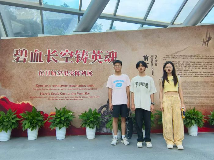 活动伊始,实践团成员们首先步入抗日航空史陈列馆。馆内丰富的史料、珍贵的实物与详实的文字记载,系统展现了中国抗日航空事业从艰难起步到浴血奋战的壮阔历程,展示了反法西斯同盟国对中国抗日航空事业的友好援助。成员们仔细聆听讲解,不时驻足凝视那些承载着历史记忆的展品,从泛黄的照片到锈迹斑斑的飞行装备,每一件物品都仿佛在诉说着抗日航空先烈们守护家国蓝天铁血丹心,让大家对那段烽火岁月有了更直观、更深刻的认识。