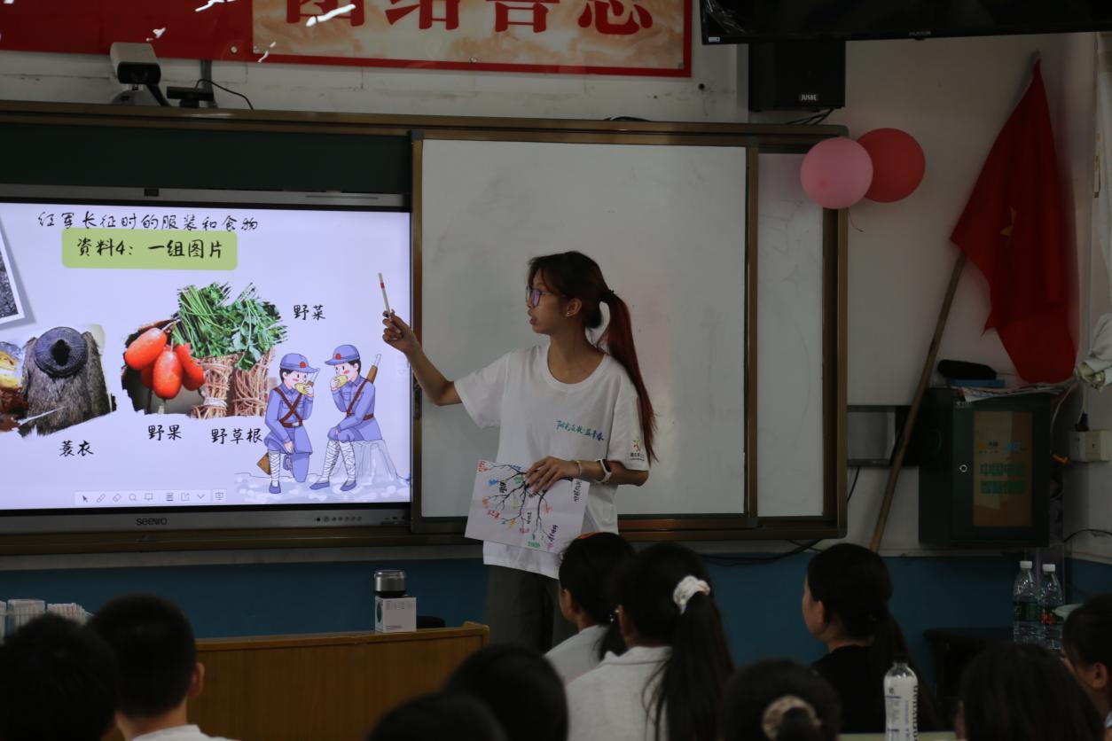 袁家沟的革命故事在课堂间流淌,志愿者以质朴的语言向同学们讲述了先辈们的热血事迹;长征红小丫的勇敢身姿,随故事讲解走进孩子们视野,搭配红军小背包手工制作,针线穿梭间,“不畏艰苦、迎难而上”的红军精神悄然植入同学们的心间。志愿者们通过课堂讲述,以多元的形式传递红色精神,厚植家国情怀。