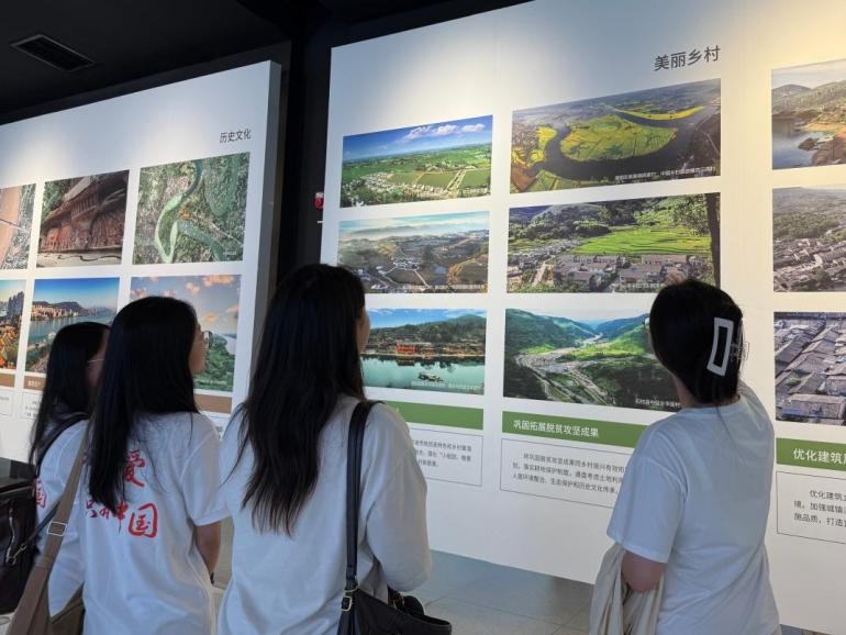 为对比东西部试点差异,团队转战多山地的重庆市。团队首先前往重庆市规划展览馆,开启了一场深入了解重庆市乡村振兴改革脉络的研学之旅。鲜明的沙盘模型直观呈现了重庆各区县农村的空间布局优化成果;一幅幅图片中,错落有致的现代农业园区、互联互通的乡村路网清晰可见,让团队成员对农村“生产、生活、生态”的三生融合有了更为具象化的认知。