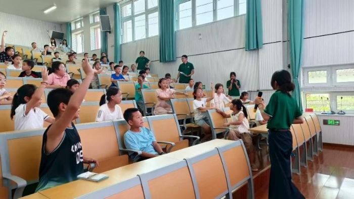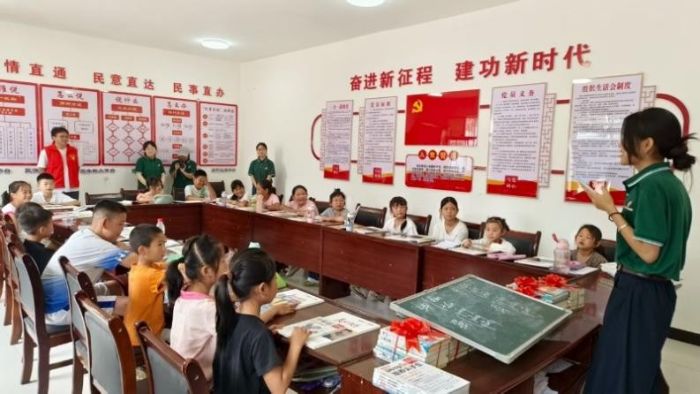 7月24日上午,实践队转战兴化乡党群服务中心,为30余名乡镇托管班学生开设“普通话魔法课堂”。课程以“乡村生活情景剧”贯穿,孩子们通过角色扮演学习“种地”“播种”等多音字词的实际应用;“童声诵家乡”环节中,队员带领学生用普通话朗读描写陇南风土的诗歌,激发对母语与乡土的热爱。