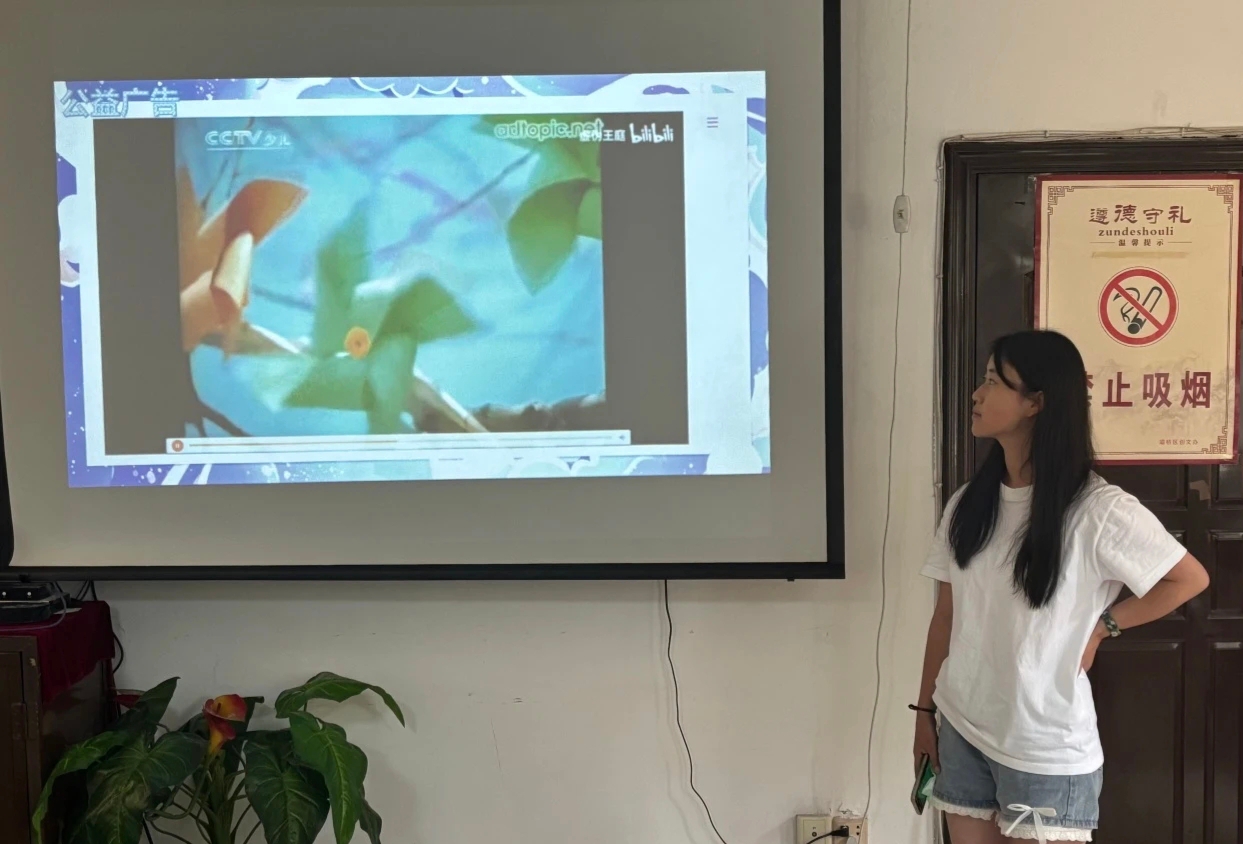 01活动伊始,实践团成员们化身“小老师”,一对一耐心解答孩子们在暑期作业中遇到的难题。成员们结合自身学习经验,用通俗易懂的方式讲解知识点,还鼓励孩子们互相讨论,培养他们独立思考的能力。作业辅导结束后,团队成员李张琳璐通过动画演示和互动问答,让孩子们了解溺水危险,掌握安全知识,学会正确呼救和自救,远离危险水域。